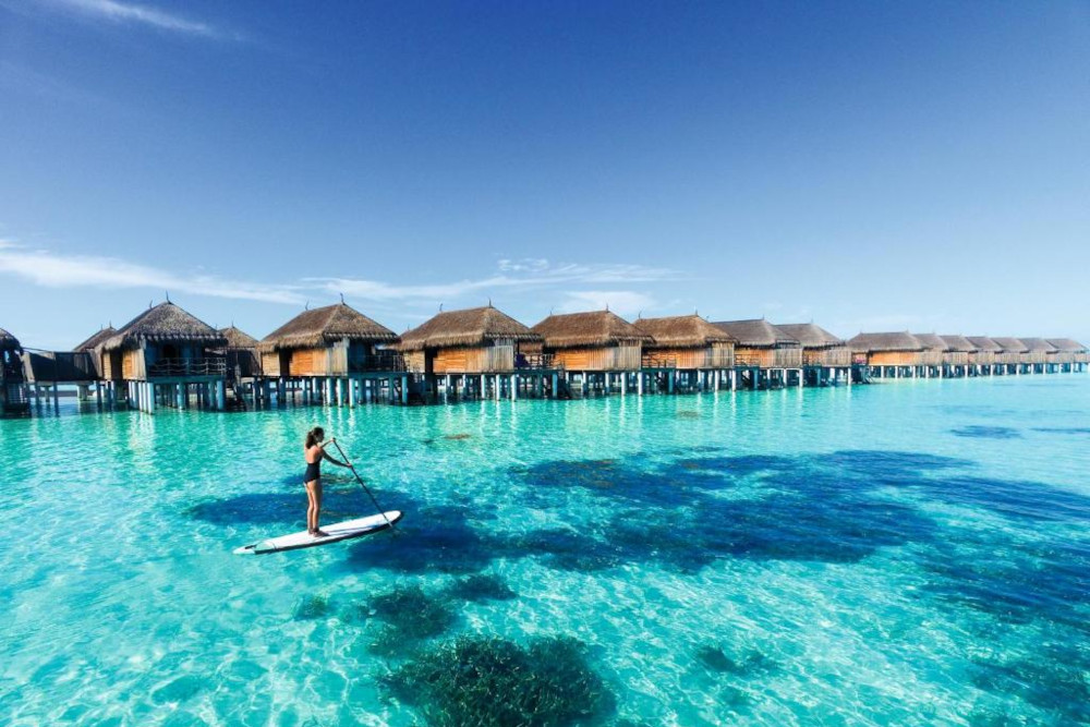 Quota base di riferimento in bassa stagione: per persona in camera doppia tipo Beach Villa, pensione completa € 3.155. Include trasferimento con volo interno + barca veloce, assicurazione multirischio con annullamento, tasse locali. Non include i voli intercontinentali.