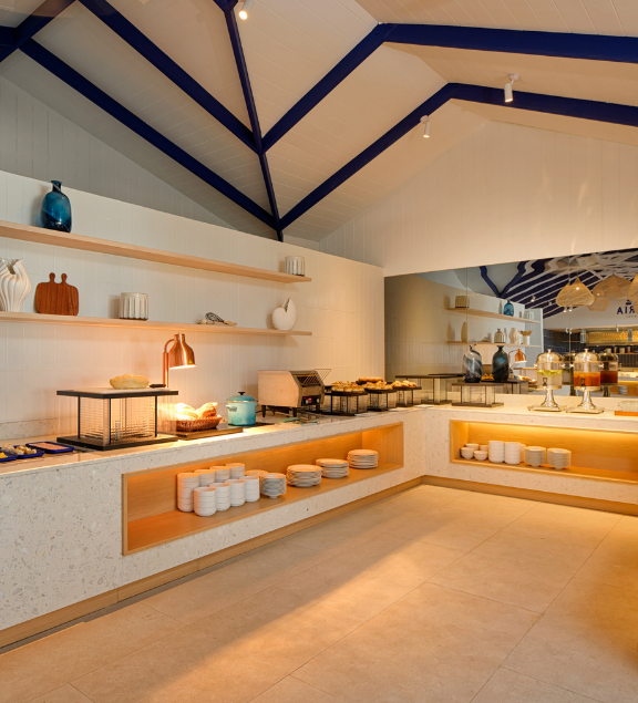 Al Soul Kitchen vengono serviti colazione, pranzo e cena a buffet. I tavoli sono su superficie sabbiosa, mentre l’area buffet su pavimento. Sono presenti due bar: il Sip&Dip vicino alla piscina e al molo della reception sul lato sud e il Beach Shack a metà della spiaggia a nord.