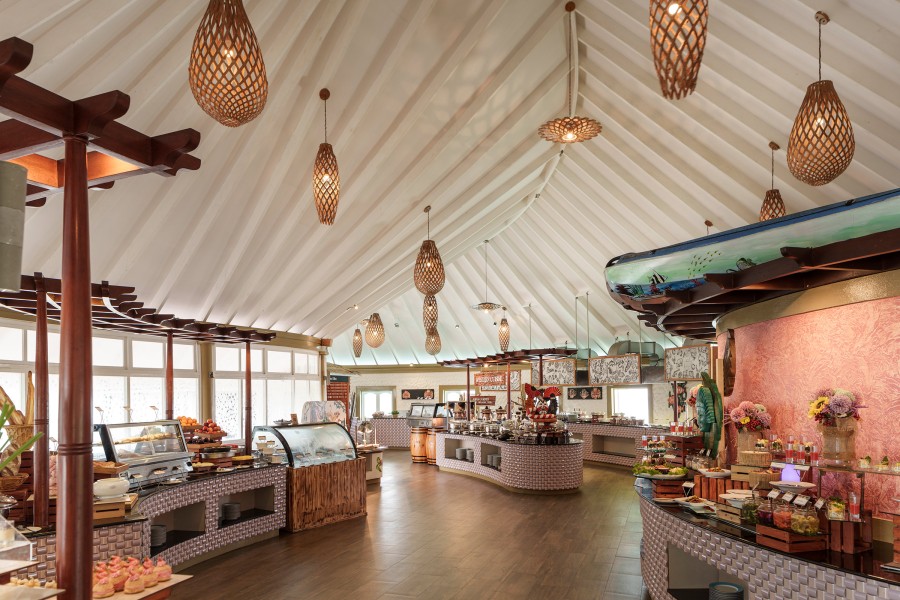 Il The Aqua è il ristorante principale con servizio buffet e cucina internazionale, ubicato sull’acqua nei pressi dell’inizio del pontile delle overwater. È aperto per la prima colazione dalle 7:30 alle 10:30, il pranzo dalle 12:30 alle 14:30 e la cena dalle 19:00 alle 21:30.