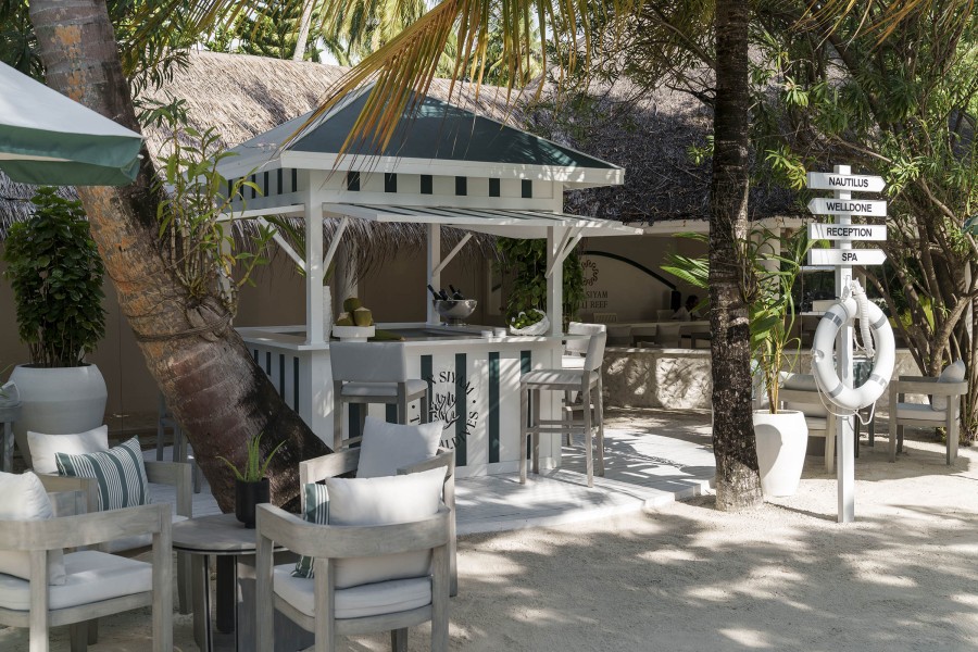 Il bar principale è il The Nautilus, situato vicino al pontile d’arrivo e all’omonima grande spiaggia che si protende verso sud. Aperto dalle 8:00 in avanti, è anche vicino alla zona d’intrattenimento serale. Da qui è possibile rilassarsi con un cocktail o una bevanda, ammirando gli stupendi tramonti maldiviani. Il secondo bar, Positive Energy (aperto dalle 8:00 in avanti), si trova nei pressi del ristorante The Aqua e della piscina comune.