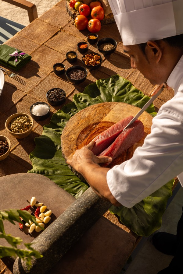 Gli ospiti possono decidere dove consumare i loro pasti, tenendo presente che la prenotazione è richiesta presso tutti tranne il The Aqua e che alcuni possono richiedere un supplemento per il pasto o alcuni piatti. Sull’isola viene coltivato un orto che rifornisce i ristoranti di prodotti freschi e genuini e a basso impatto ambientale.